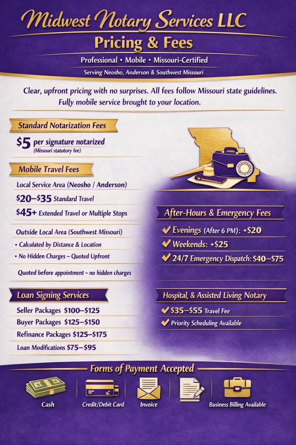 At Midwest Notary Services LLC, we are committed to delivering dependable, convenient, and secure notarial services to individuals and businesses across Missouri. Whether you need a notary to come to your location or prefer the flexibility of a virtual appointment, we provide seamless solutions designed around your schedule.